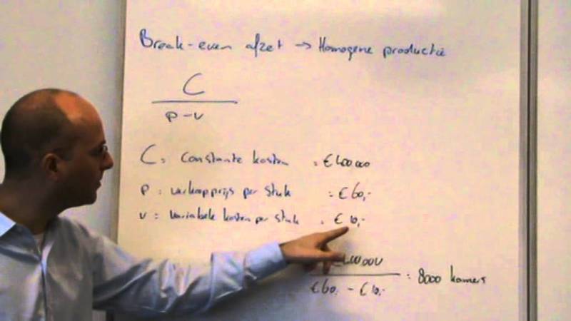 De break-even afzet is de afzet waarbij de onderneming winst noch verlies maakt.break-evenafzet = totale vaste kosten - dekkingsbijdrage per product . De veiligheidsmarge is het verschil tussen de werkgelijke afzet en de break-evenafzet, uitgedrukt in procenten van de werkelijke afzet.